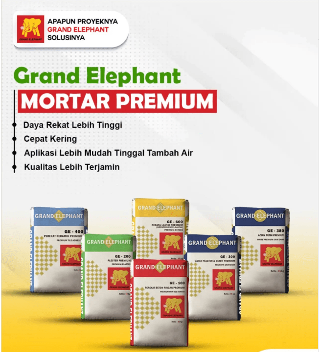 Semen Mortar Grand Elephant adalah sebuah produk semen instan yang diproduksi oleh PT. Sinar Indogreen Kencana. Dalam hal kualitas, semen mortar memiliki tingkat ketahanan dan kekuatan yang baik dan efisien dalam pemasangannya.