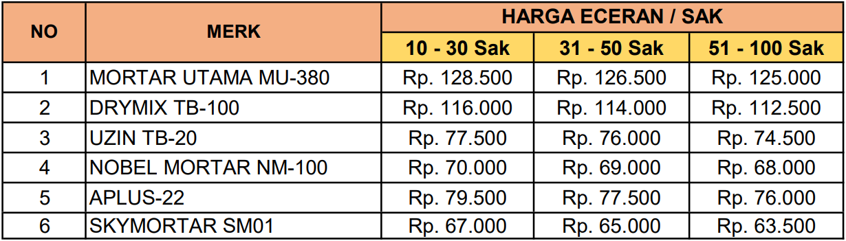 Berikut daftar harga perekat bata ringan hebel lengkap di Surabaya, Sidoarjo, Gresik
