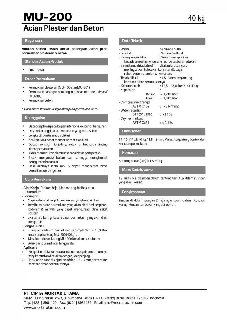 Mortar Utama (MU) merupakan produk semen mortar yang dimiliki oleh PT. Cipta Mortar Utama.