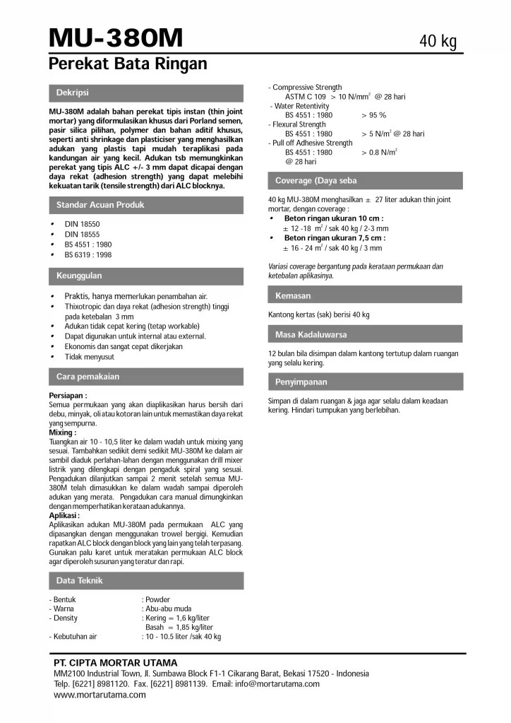 1. MU 380 – PEREKAT BATA RINGAN